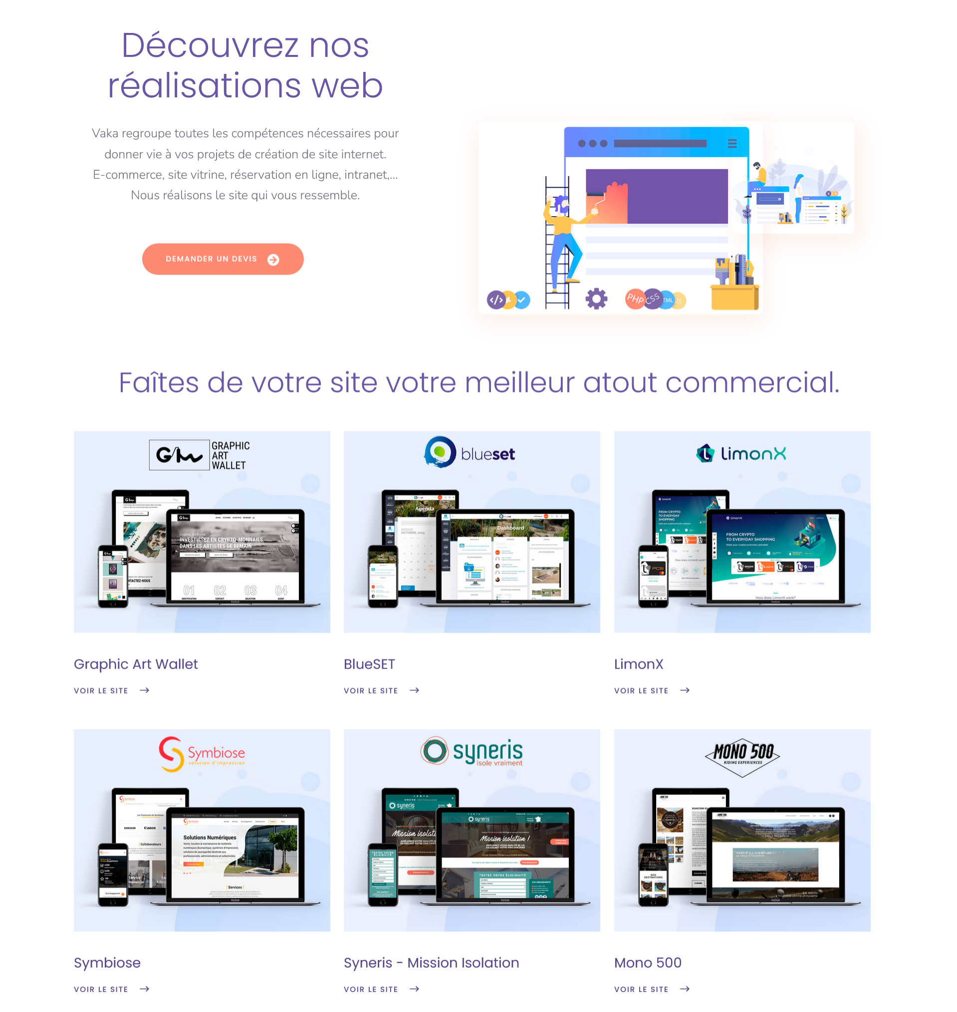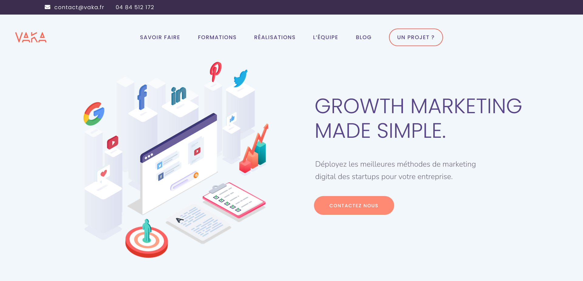 Chez Vaka, une des agences les plus en vue en matière de marketing digital, j’ai eu pour tâche de rénover le site internet de l’agence. En suivant les pôles de compétences de l’agence nous avons refait l’UI/UX du site, améliorer le parcours des utilisateurs, améliorer le design et ajouter un module de génération de devis en ligne.